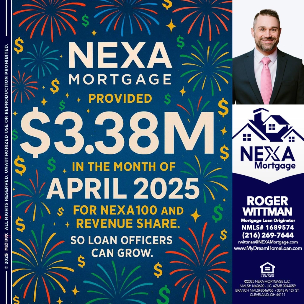 Hi, my name is Roger Wittman. I’m a Loan Officer with NEXA Mortgage LLC., offering personalized mortgage solutions, fast customized quotes, great rates and service with integrity.