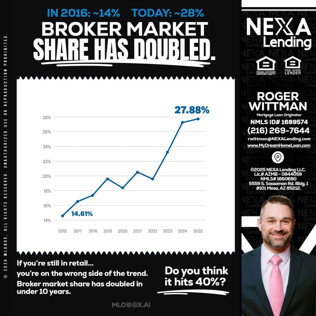 BROKER MARKET - Roger Wittman -Mortgage Loan OriginatorHi, my name is Roger Wittman. I’m a Loan Officer with NEXA Lending LLC., offering personalized mortgage solutions, fast customized quotes, great rates and service with integrity.