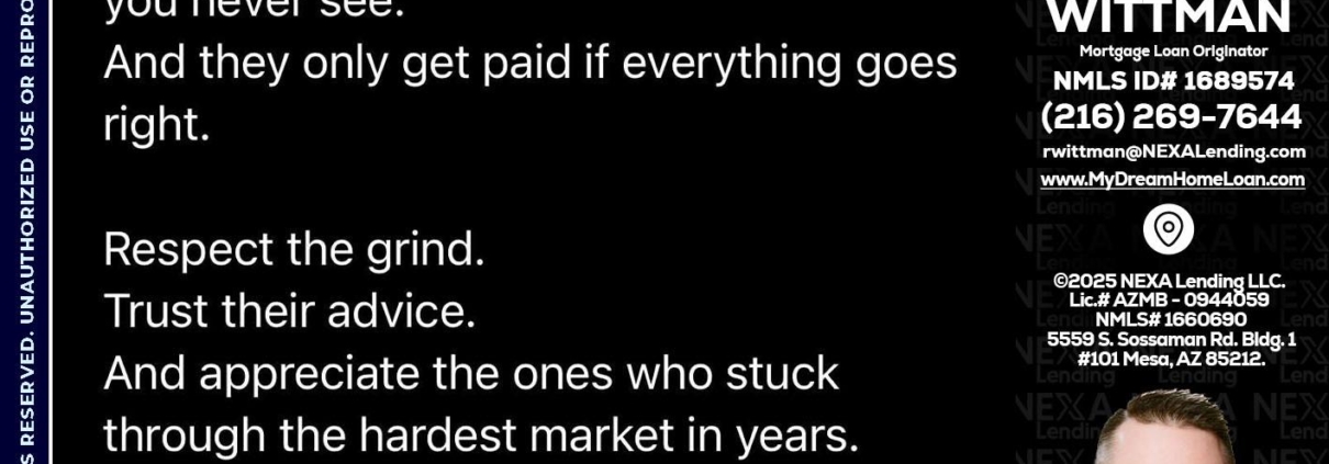 Hi, my name is Roger Wittman. I’m a Loan Officer with NEXA Mortgage LLC., offering personalized mortgage solutions, fast customized quotes, great rates and service with integrity.