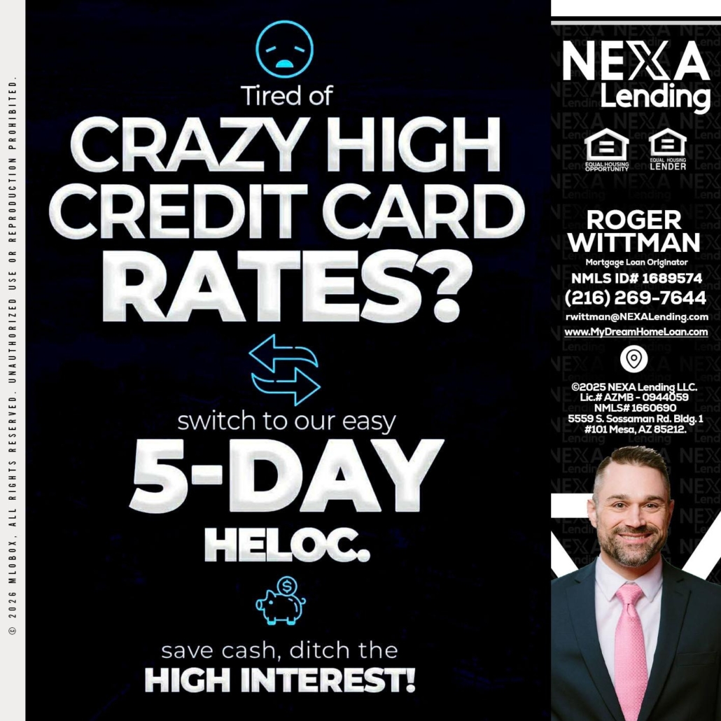 Hi, my name is Roger Wittman. I’m a Loan Officer with NEXA Lending LLC., offering personalized mortgage solutions, fast customized quotes, great rates and service with integrity.
