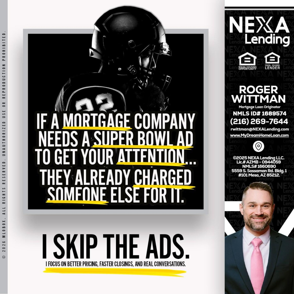 Hi, my name is Roger Wittman. I’m a Loan Officer with NEXA Lending LLC., offering personalized mortgage solutions, fast customized quotes, great rates and service with integrity.