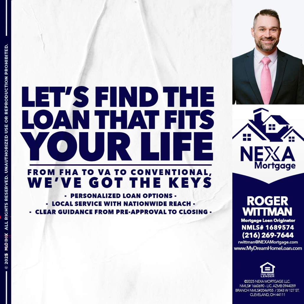 Hi, my name is Roger Wittman. I’m a Loan Officer with NEXA Mortgage LLC., offering personalized mortgage solutions, fast customized quotes, great rates and service with integrity.