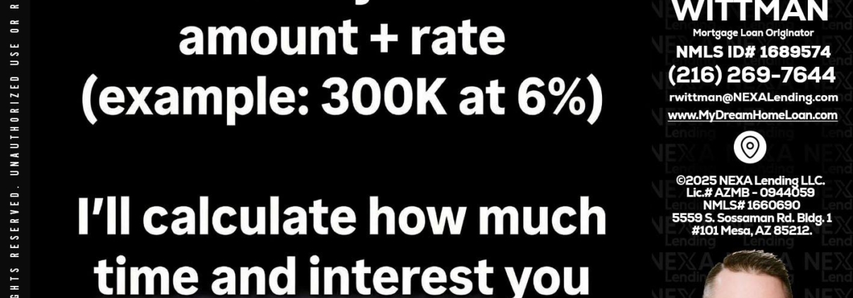 Hi, my name is Roger Wittman. I’m a Loan Officer with NEXA Lending LLC., offering personalized mortgage solutions, fast customized quotes, great rates and service with integrity.