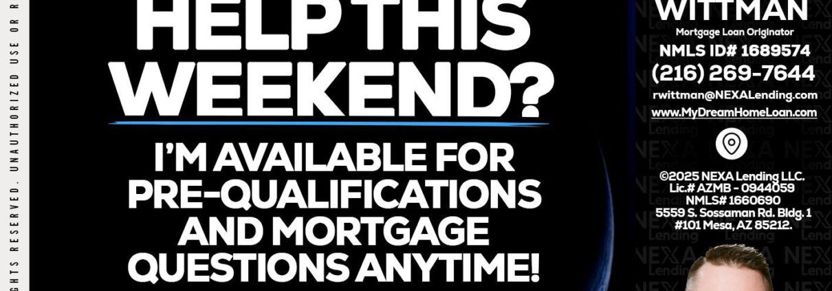 REAL ESTATE AGENTS - Roger Wittman -Mortgage Loan OriginatorHi, my name is Roger Wittman. I’m a Loan Officer with NEXA Lending LLC., offering personalized mortgage solutions, fast customized quotes, great rates and service with integrity.