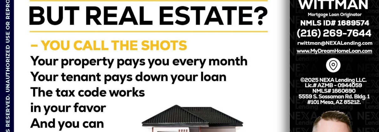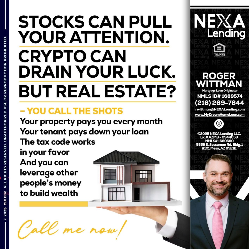 STOCK CAN - Roger Wittman -Mortgage Loan OriginatorHi, my name is Roger Wittman. I’m a Loan Officer with NEXA Mortgage LLC., offering personalized mortgage solutions, fast customized quotes, great rates and service with integrity.