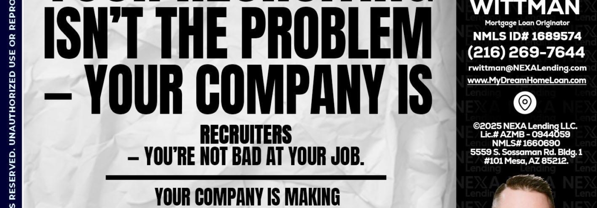 Hi, my name is Roger Wittman. I’m a Loan Officer with NEXA Mortgage LLC., offering personalized mortgage solutions, fast customized quotes, great rates and service with integrity.